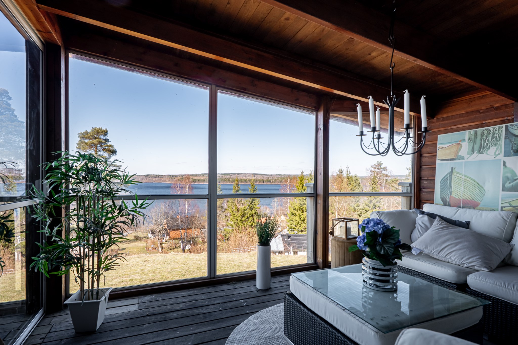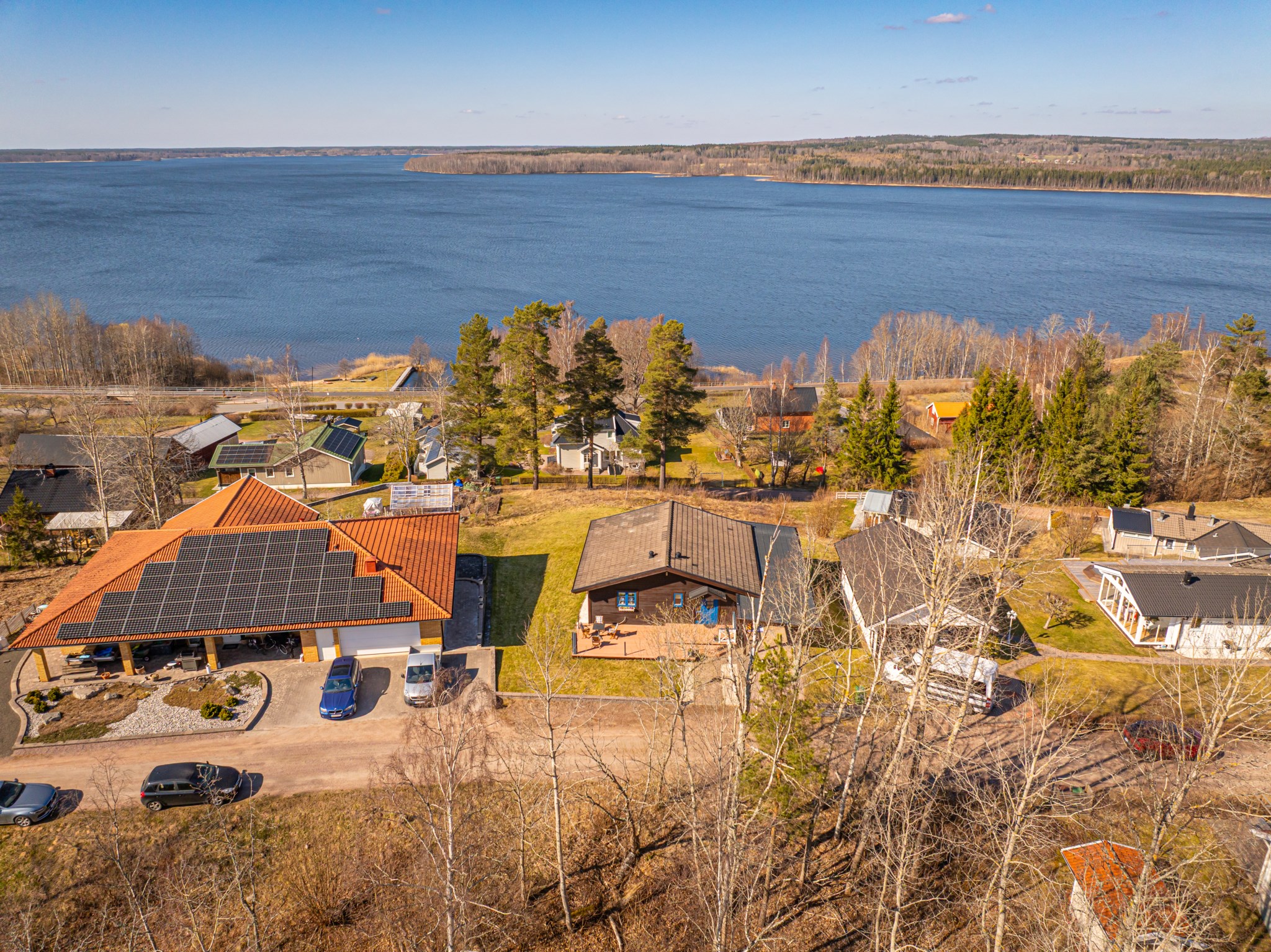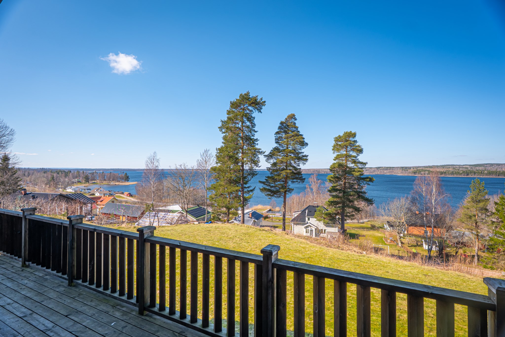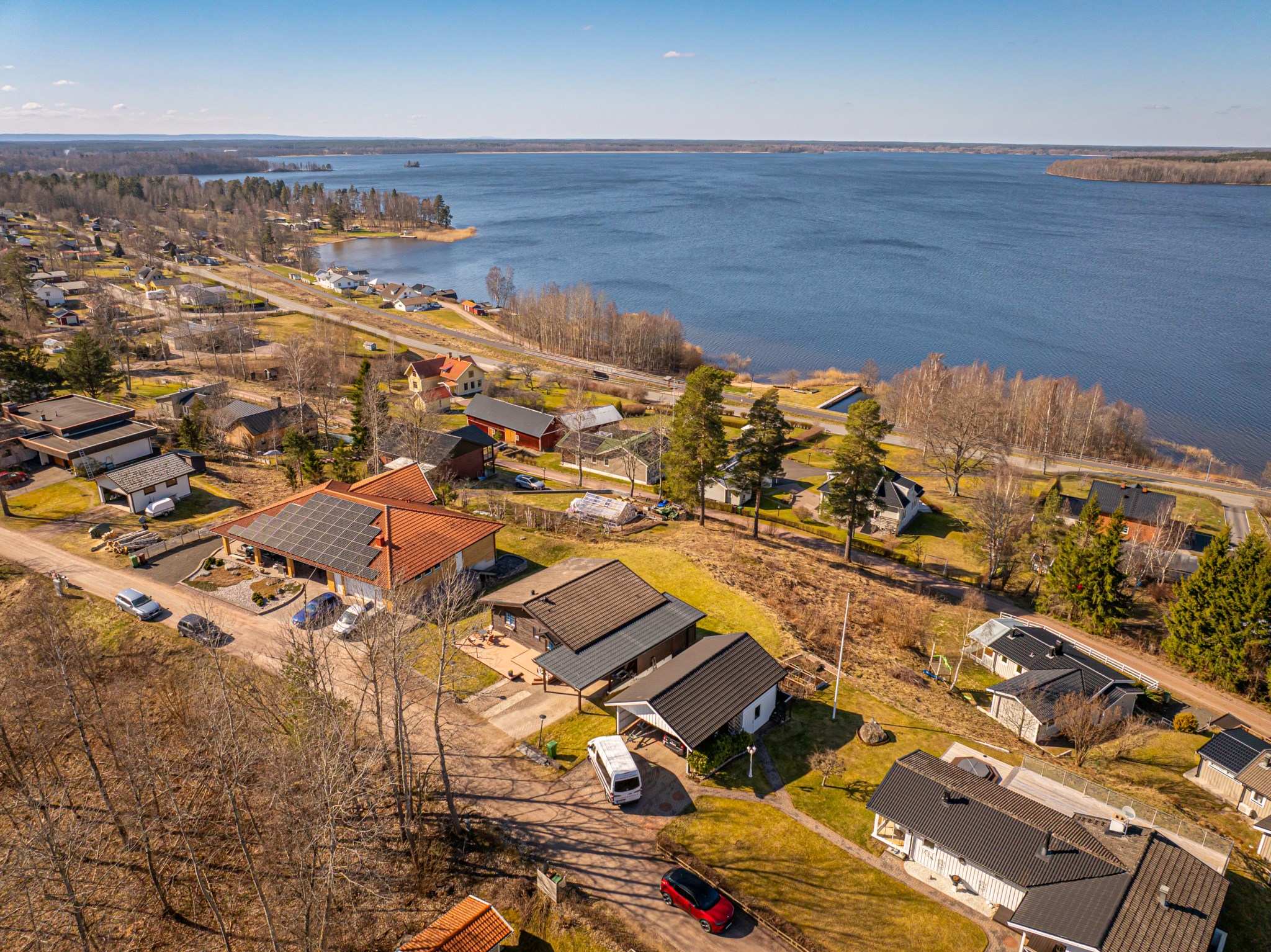 Med en fantastisk utsikt över sjön ligger denna villa, byggd 1997 i trä med öppen planlösning och ryggåstak i hela övervåningen. En stor terrass i västerläge till stor del under det stora utskutande taket där man kan njuta av solnedgångarna över Örlen till sena kvällen. Vidbyggd carport på framsidan av huset på den lättskötta tomten om 799 kvm.