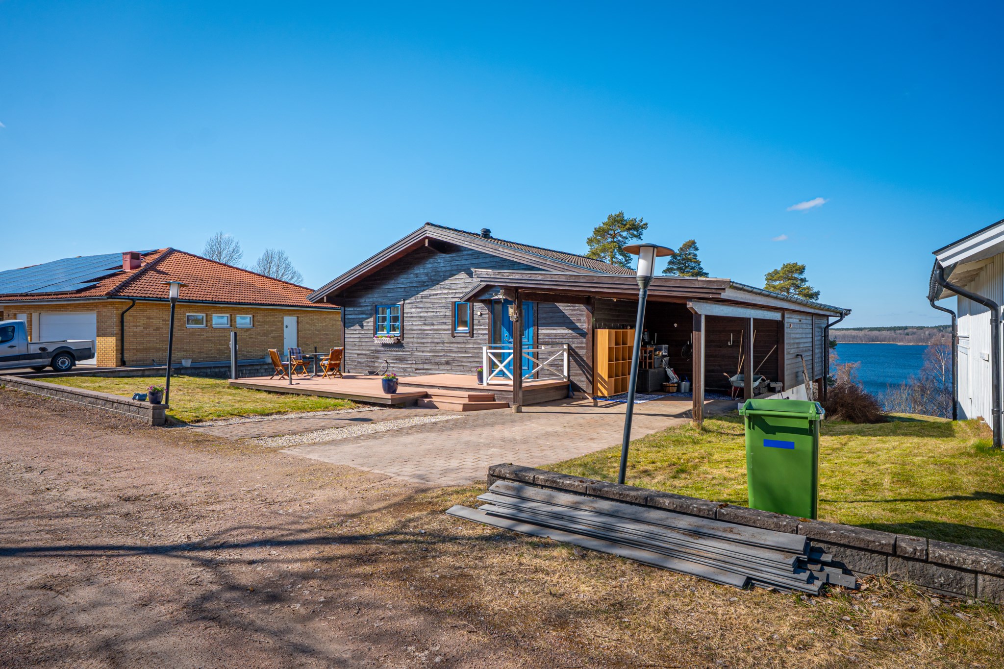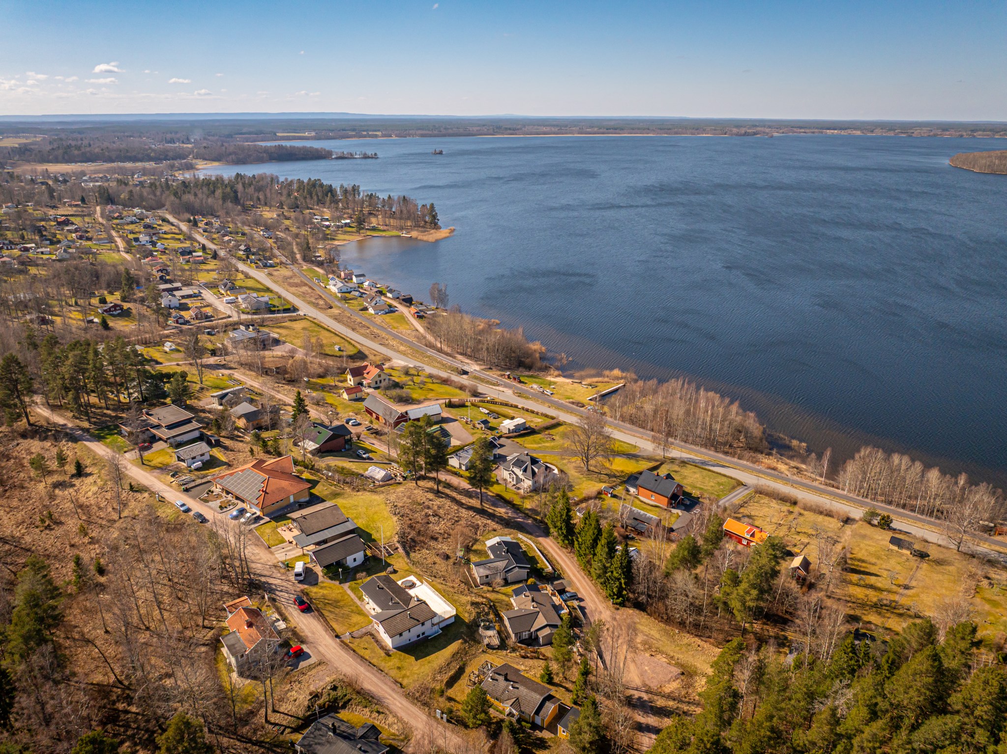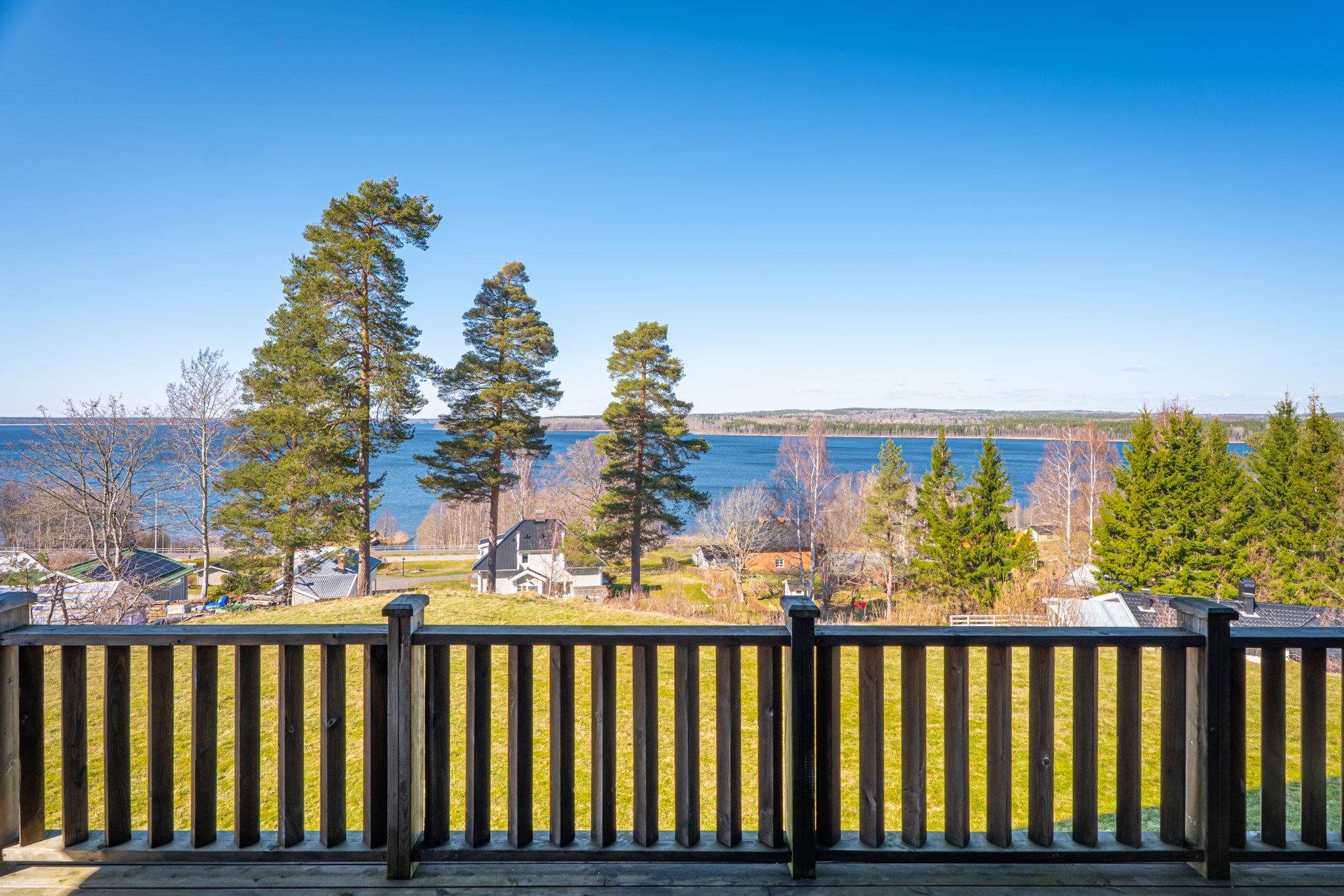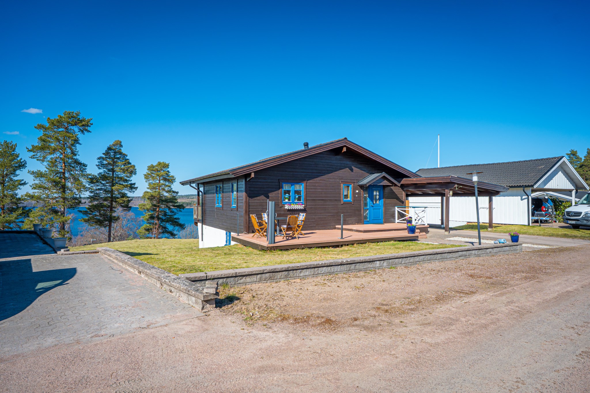 Med en fantastisk utsikt över sjön ligger denna villa, byggd 1997 i trä med öppen planlösning och ryggåstak i hela övervåningen. En stor terrass i västerläge till stor del under det stora utskutande taket där man kan njuta av solnedgångarna över Örlen till sena kvällen. Vidbyggd carport på framsidan av huset på den lättskötta tomten om 799 kvm.