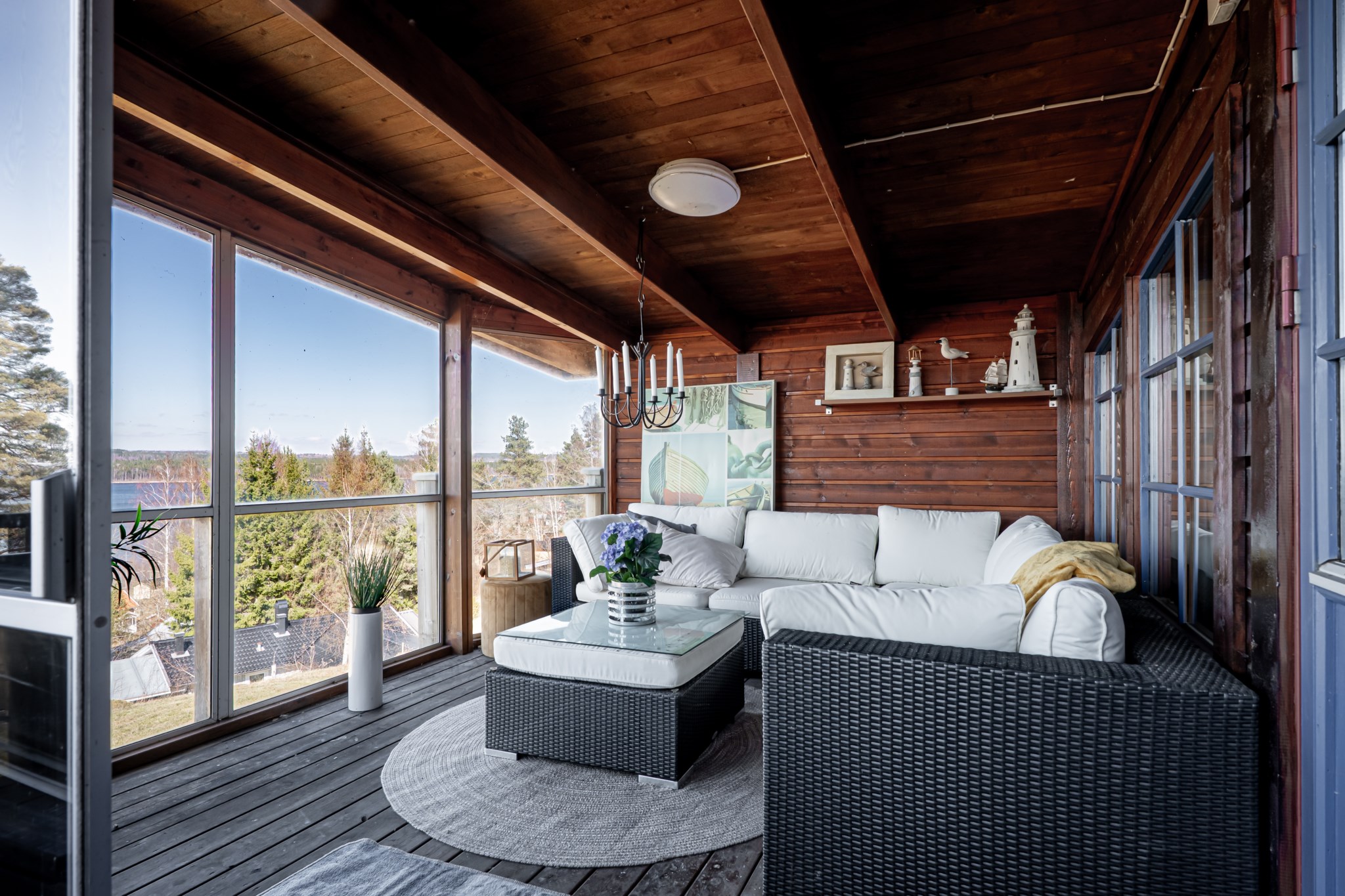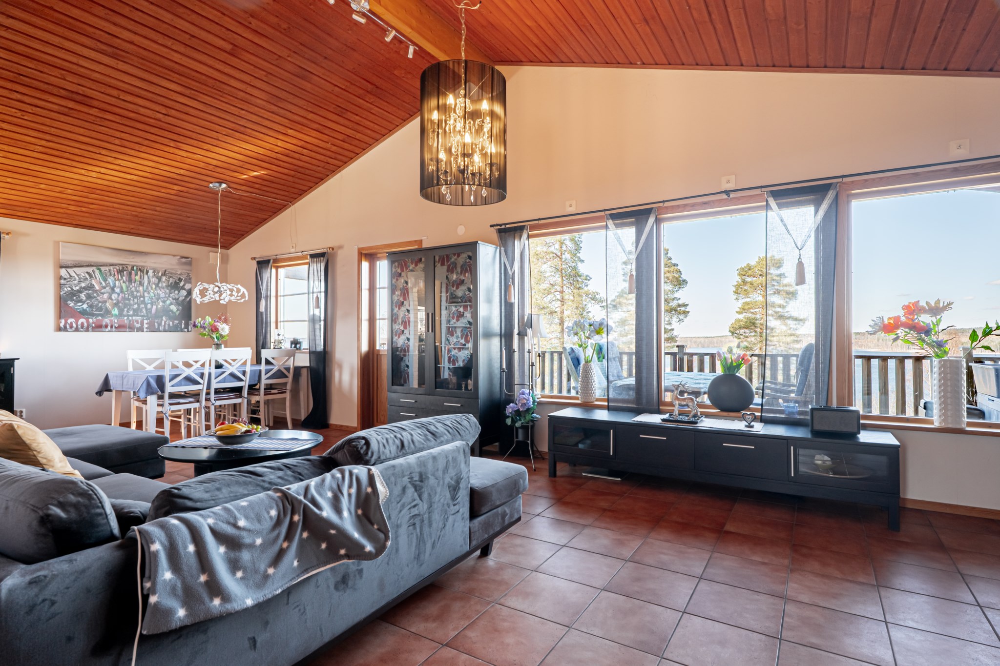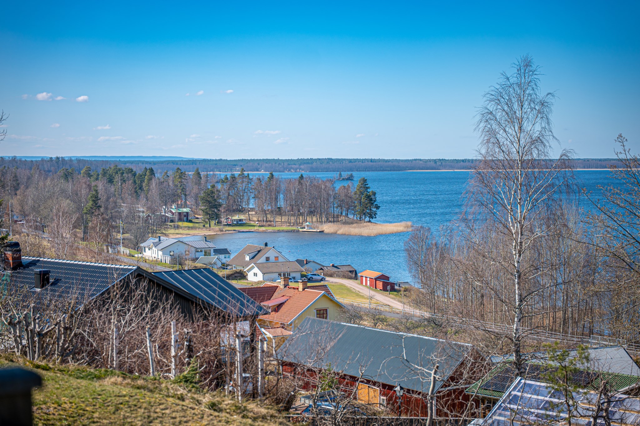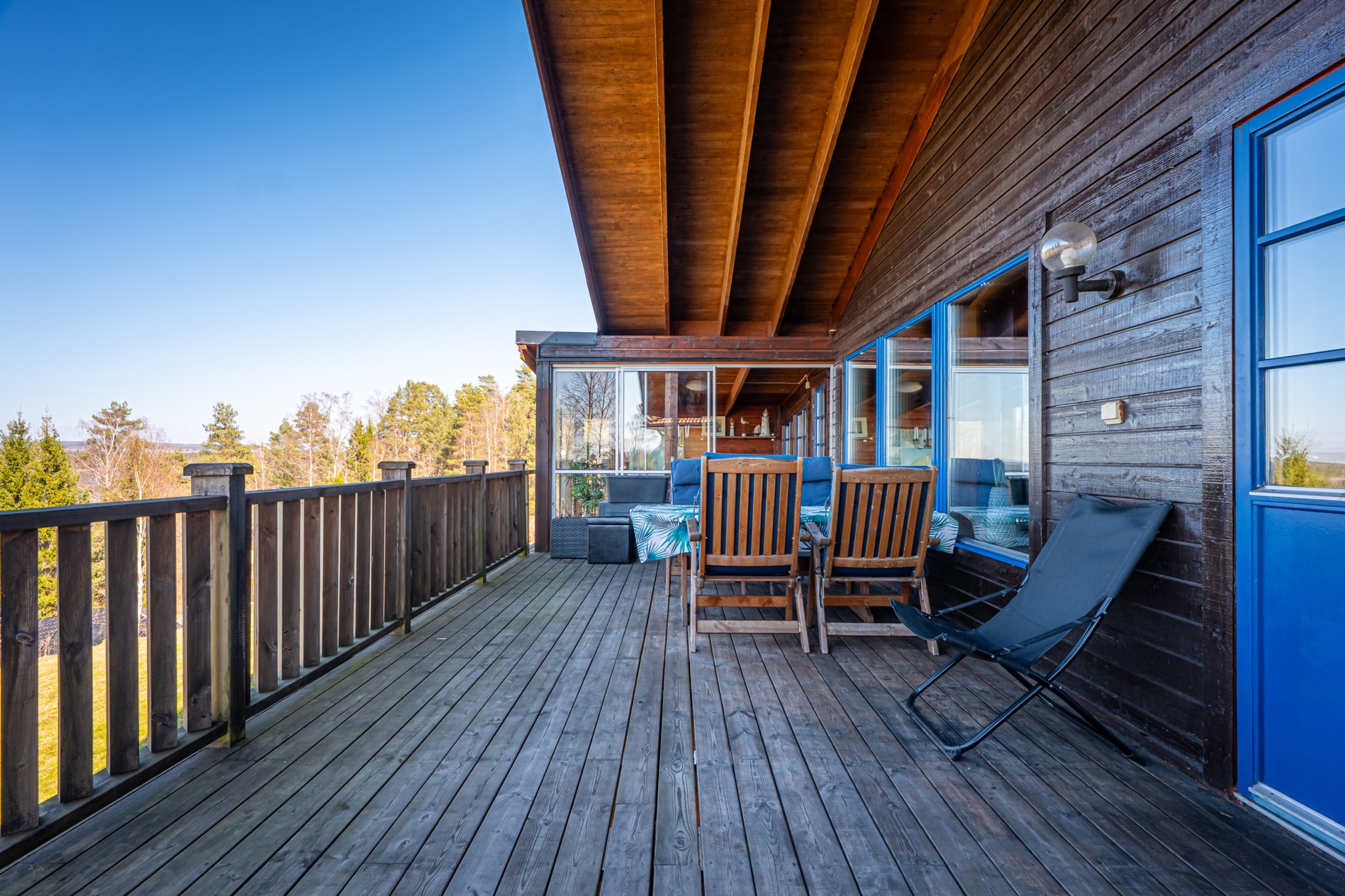 Med en fantastisk utsikt över sjön ligger denna villa, byggd 1997 i trä med öppen planlösning och ryggåstak i hela övervåningen. En stor terrass i västerläge till stor del under det stora utskutande taket där man kan njuta av solnedgångarna över Örlen till sena kvällen. Vidbyggd carport på framsidan av huset på den lättskötta tomten om 799 kvm.