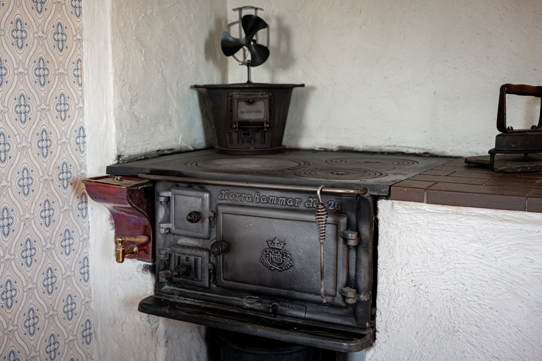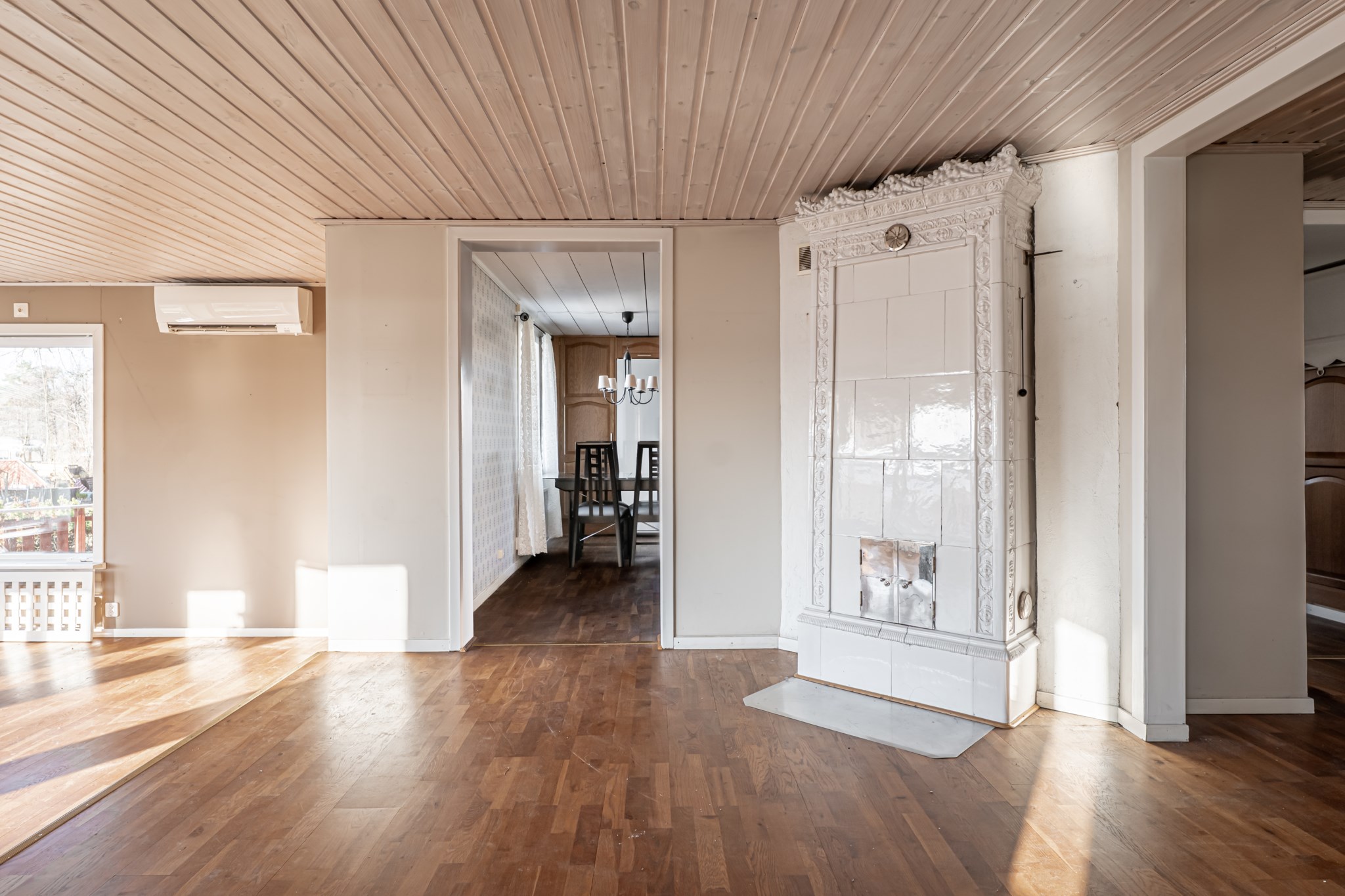 Luft/luftvärmepump, elgolvvärme i badrum, elradiatorer, järnspis och kakelugn