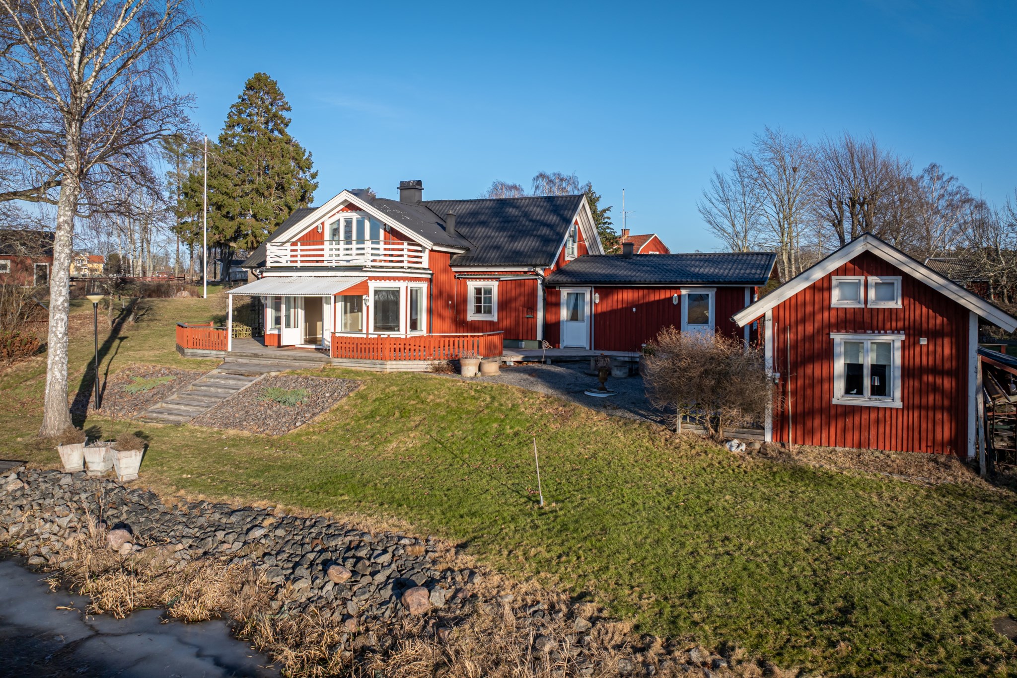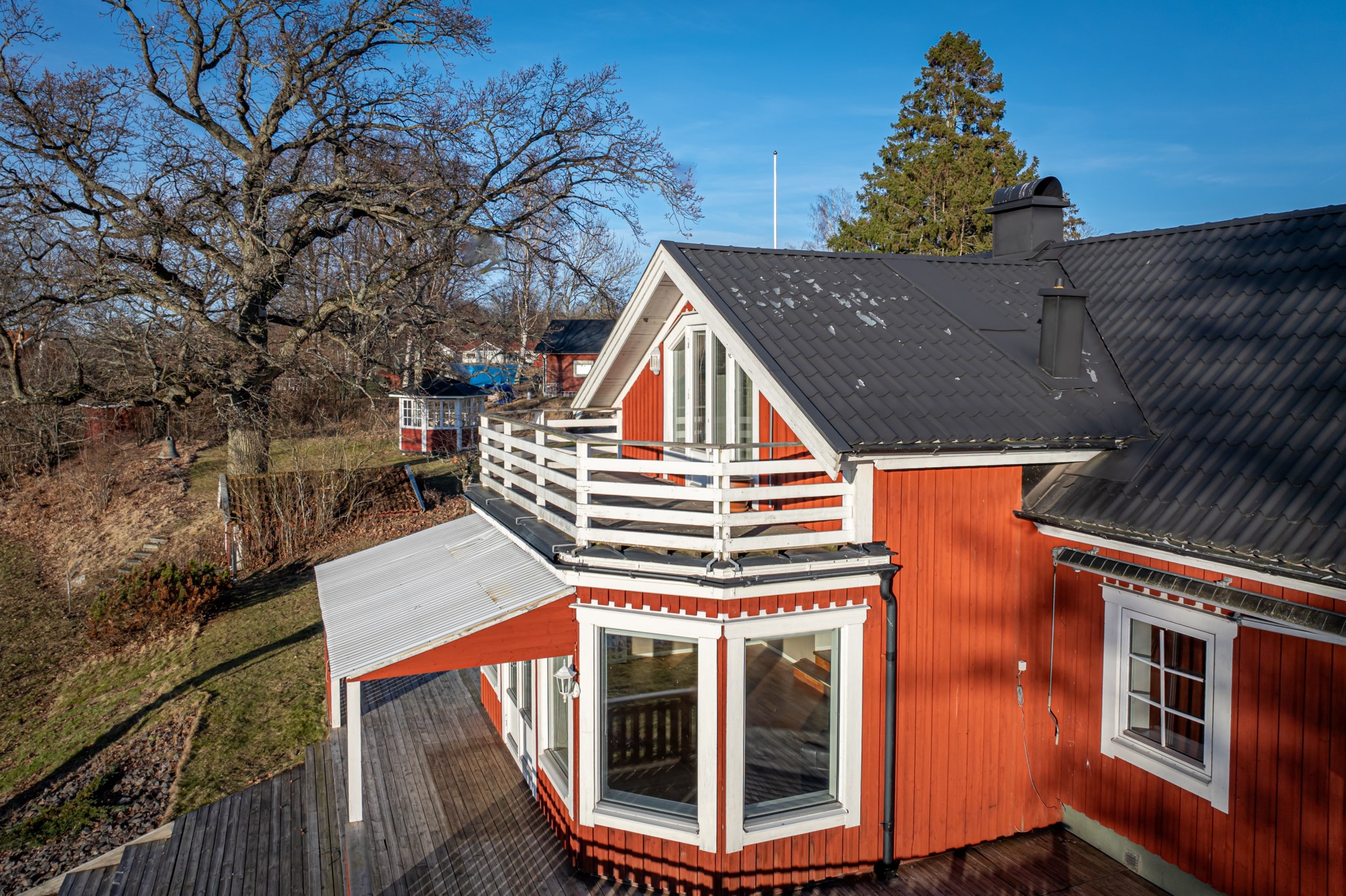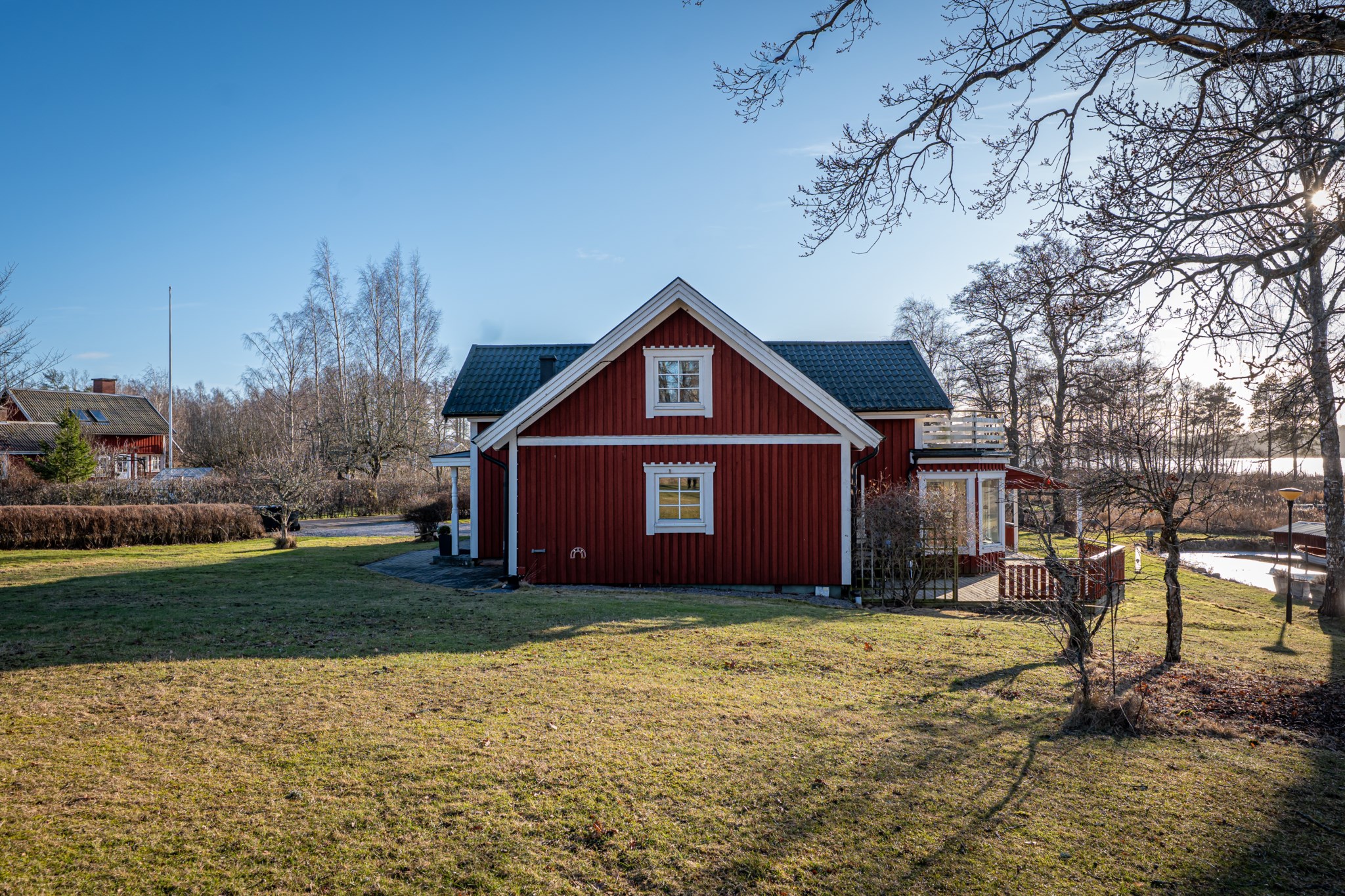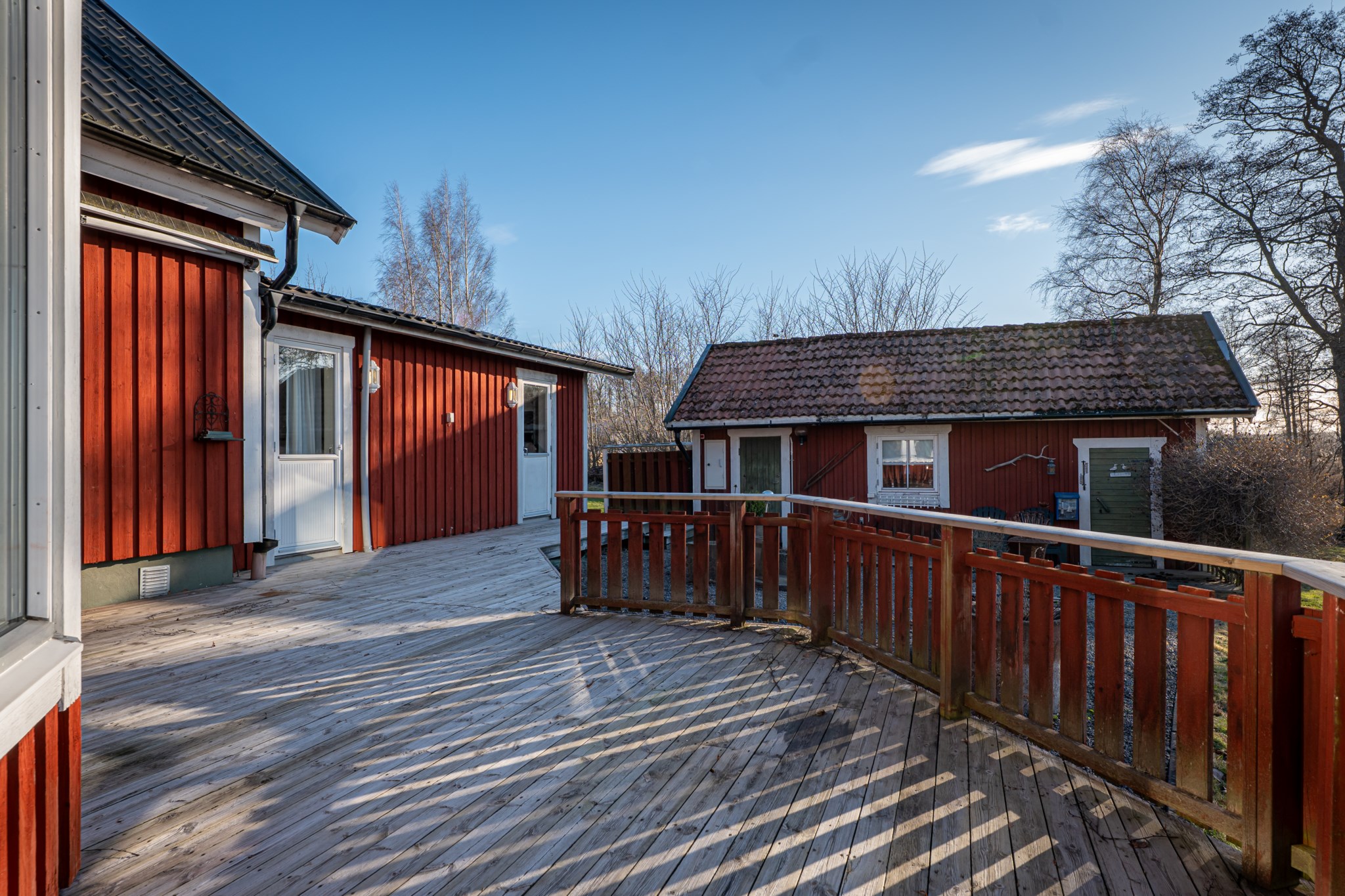 Generösa terrasser skapar en naturlig förlängning av huset och suddar ut gränsen mellan ute och inne. Här finns gott om plats för både loungemöbler, matgrupp och grönska – perfekt för långa middagar, morgonkaffet eller avkoppling i kvällssolen. En privat oas som lyfter både livskvalitet och boendets helhetskänsla.